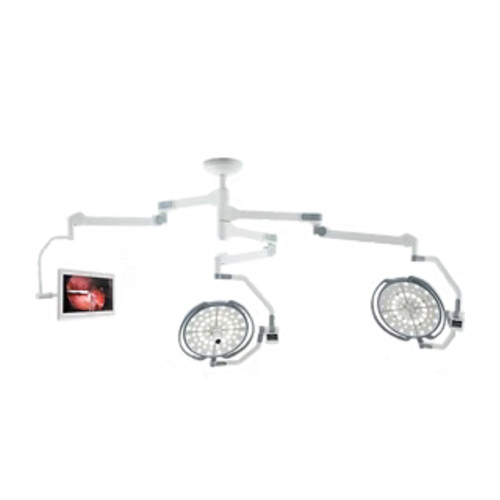 Doble Cúpula con Monitor Médico de 24” montado en el Brazo (con cámara). Si bien la cámara de alta resolución proporciona imágenes de buena calidad, el monitor brinda la oportunidad de ver el sitio quirúrgico con mayor claridad. Además de esto, el monitor se puede utilizar con fines educativos. La intensidad de la luz de 160.000 Lux proporciona una visión clara del área quirúrgica y no causa fatiga ocular.